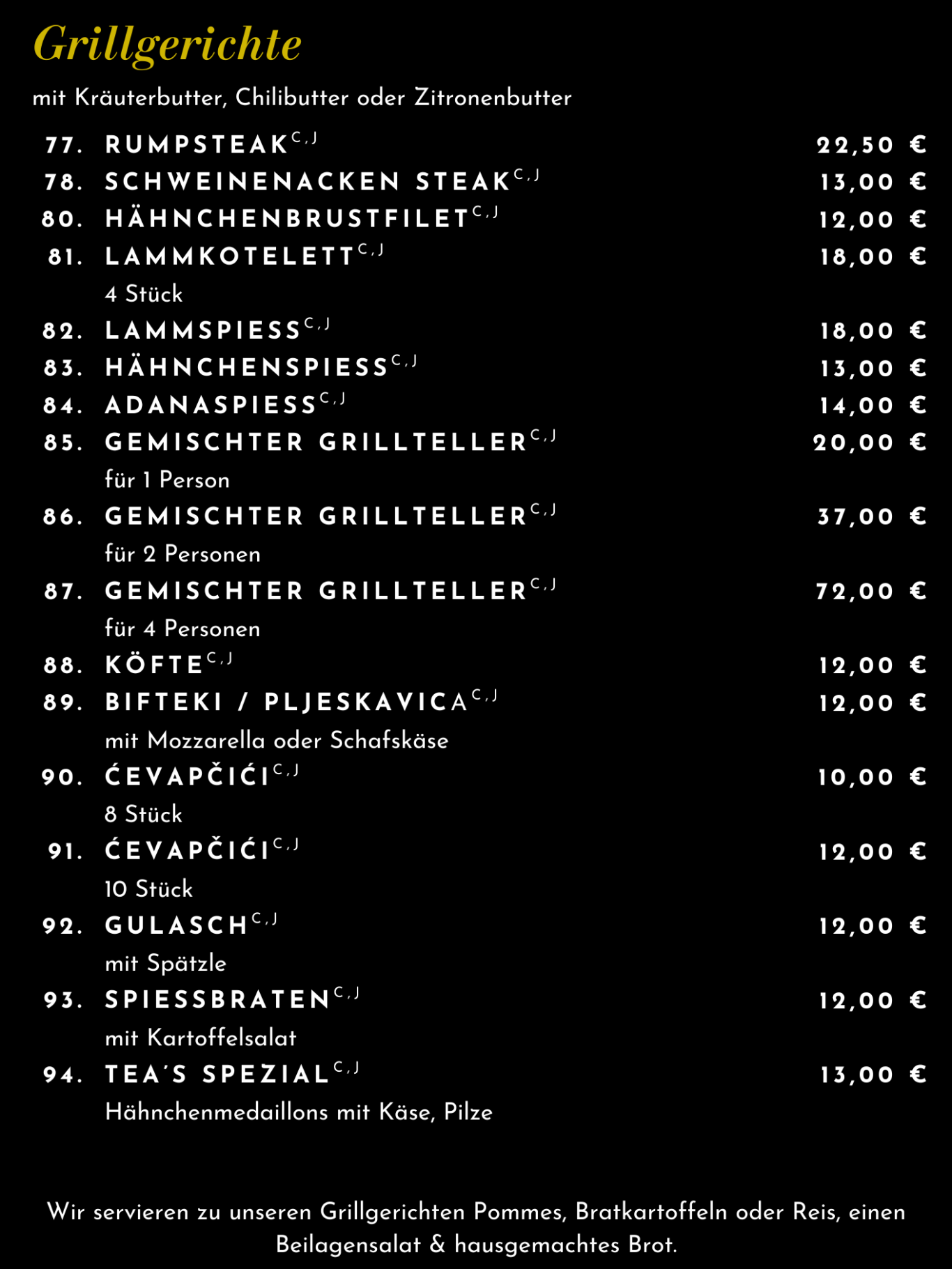 Entdecken Sie eine vielfältige Auswahl an kroatischen Spezialitäten, deutschen Klassikern und beliebten italienischen Gerichten - begleitet von passenden Getränken für jeden Geschmack.