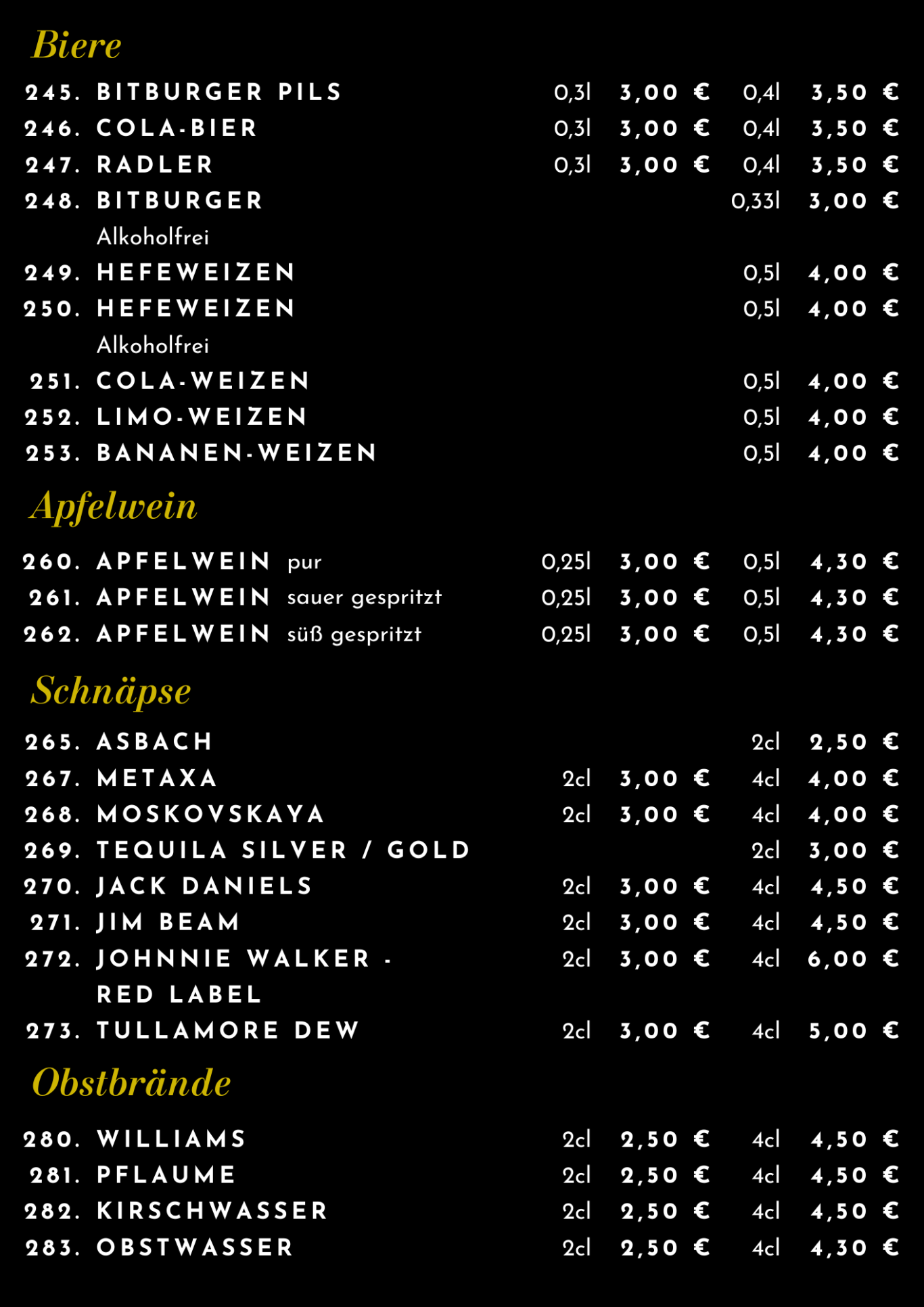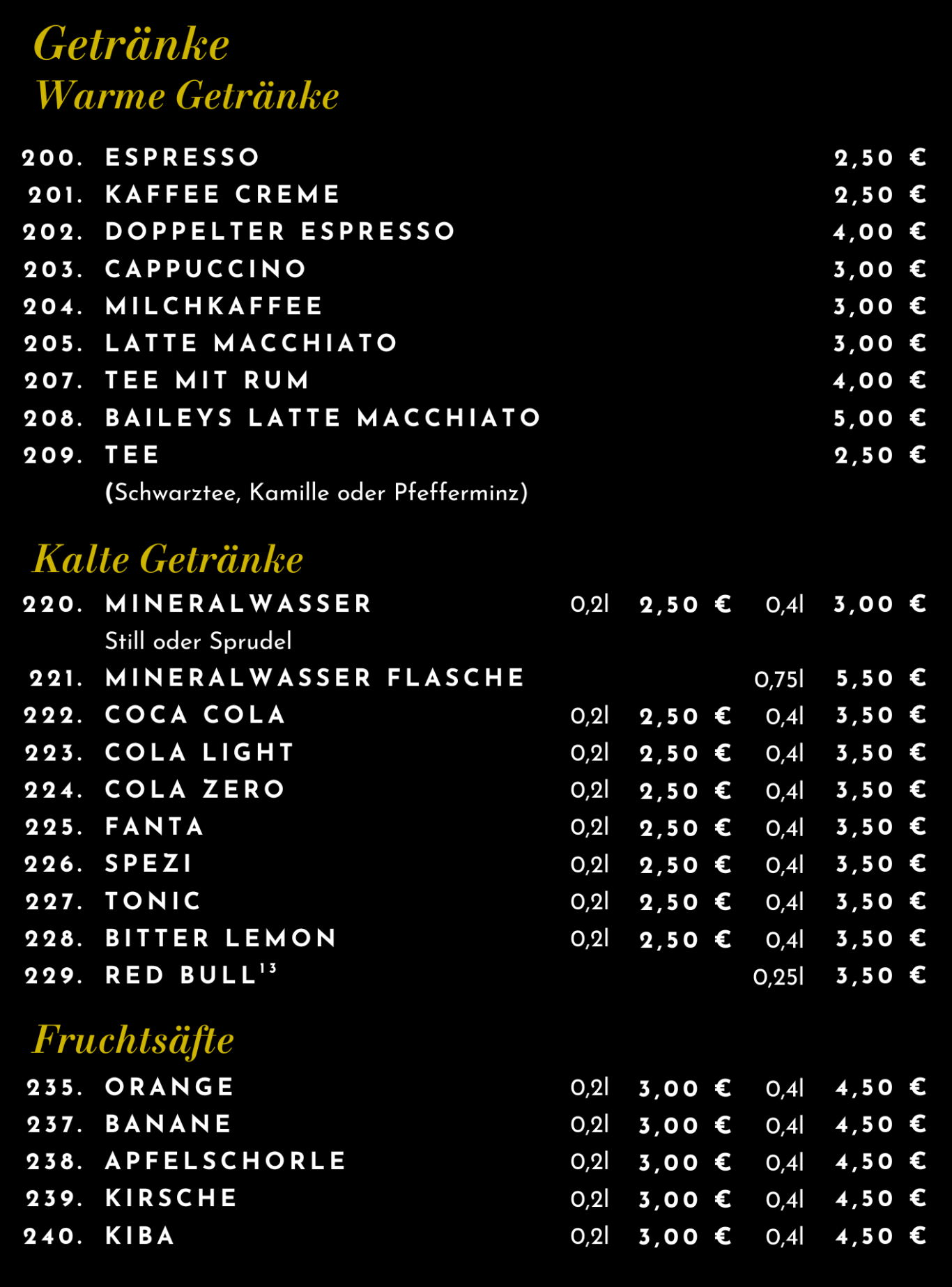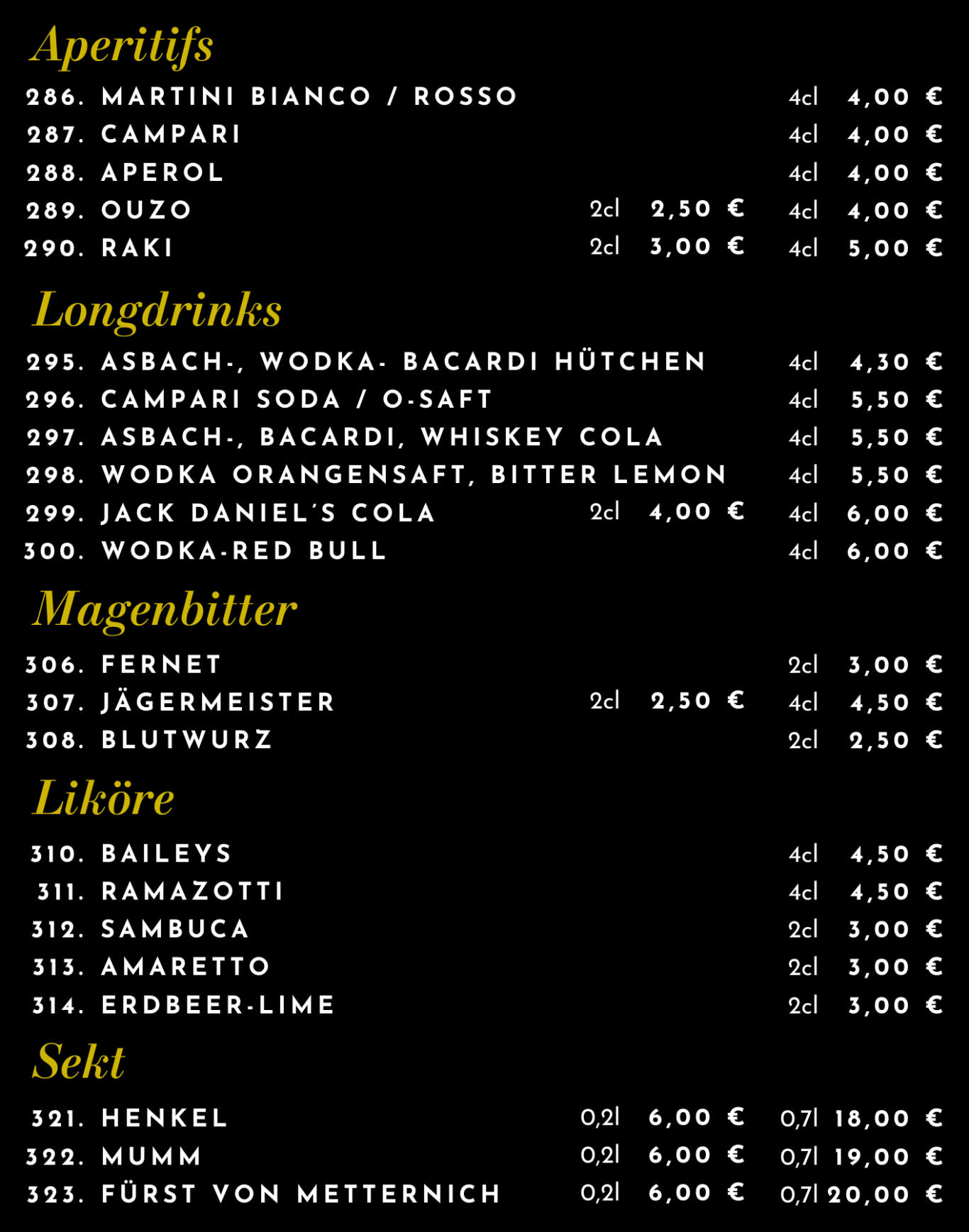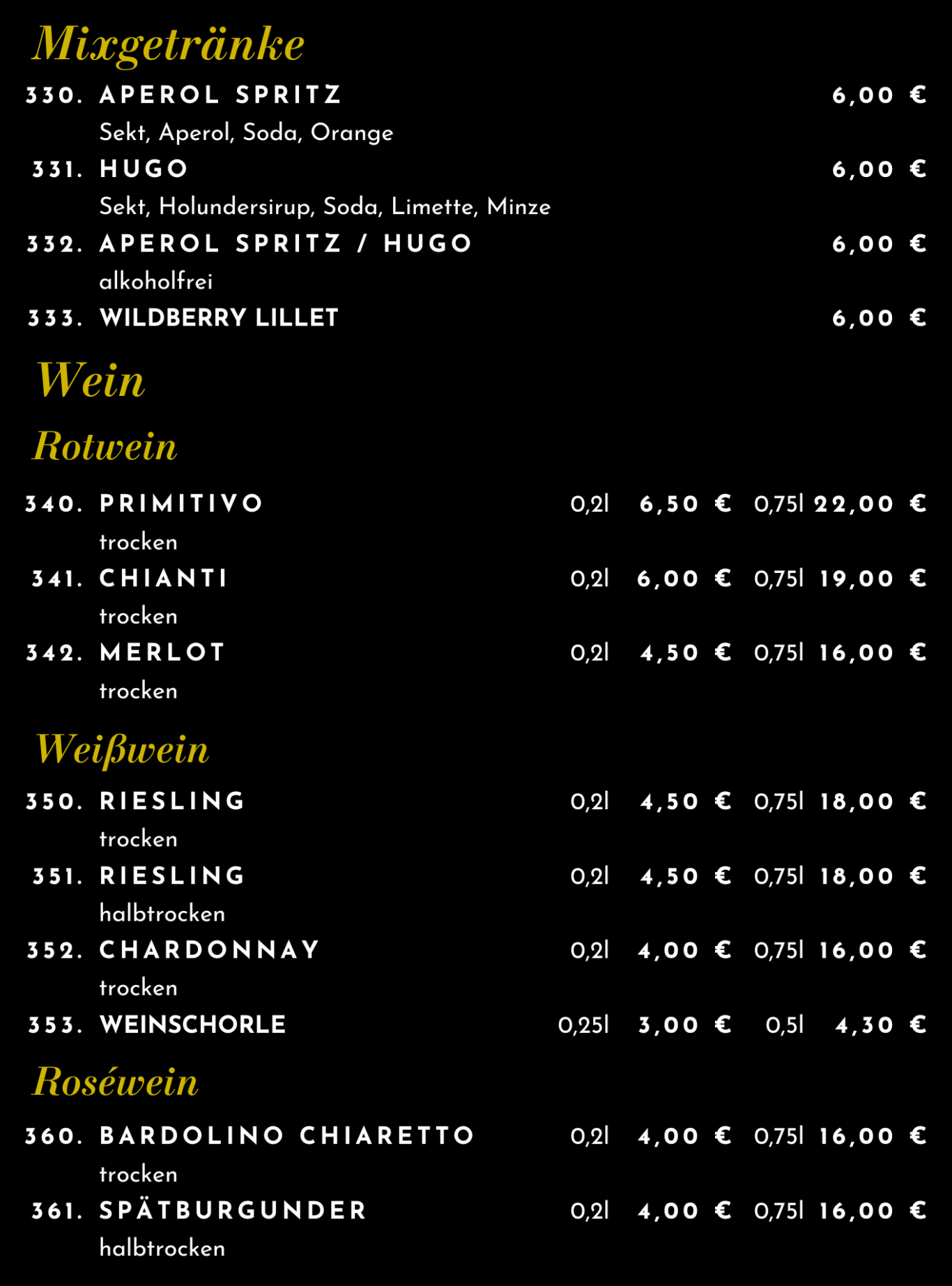 Speise- & Getränkekarte